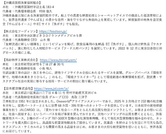 今後、この仕組みを国頭漁協から沖縄県内、さらには全国の産地へと広げ、より多くの消費者の皆さまへ獲れたての感動をお届けしてまいります。また、本プロジェクトは現メンバーにとどまらず、広く様々な知見を持つ団体・企業などとの連携を視野に展開します。こうした取り組みを通じて豊かな海の恵みを次世代へつなぐことで、日本の食文化をさらに深化させる一助となるよう、業界の垣根を越えて取り組んでまいります。