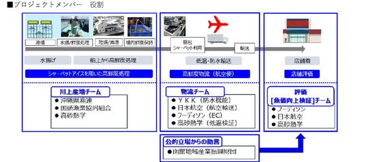 沖縄県国頭漁業協同組合、株式会社フーディソン、高砂熱学工業株式会社、日本航空株式会社、YKK株式会社、沖縄県漁業協同組合連合会、公益財団法人函館地域産業振興財団(北海道立工業技術センター)は、国頭漁協で獲れた鮮魚を、独自の冷却技術と新梱包材を活用した航空輸送を組み合わせ、魚の鮮度を科学的に評価する「K値※資料」の考えに基づきお届けする「高鮮度輸送プロジェクト」(以下「本プロジェクト」)を始動します