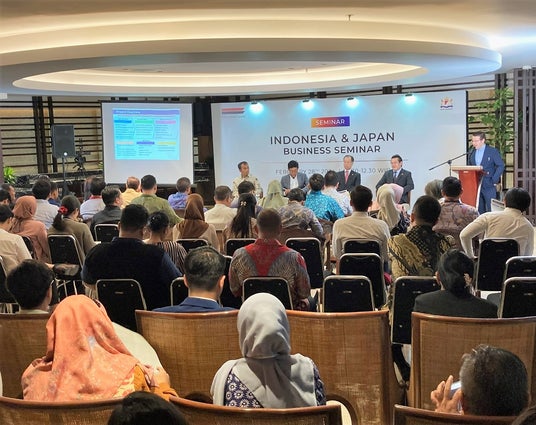 また、J-GoodTechなどの施策をインドネシア企業への紹介するため、MOU締結にあわせてASPAKIなど現地企業や協同組合から50名が参加するビジネスセミナーをKADINと共催で開催しました。セミナーでは、日本の医療機器分野等に高い関心が示され、日本企業と連携しイノベーションを創出したいとの声が複数ありました。