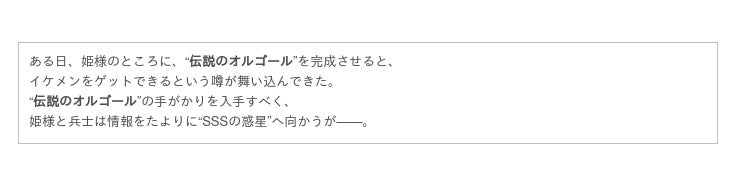 果たして姫様たちは“伝説のオルゴール”を完成させ、イケメンと出会うことができるのでしょうか。ゲットしたアイテムをキープしつつ、続報をお待ちください。