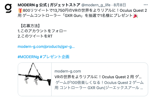 1.公式アカウント(https://twitter.com/modern_g_life)をフォロー