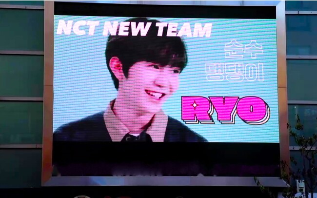 2023年10月30日(月)から11月5日(日)までの期間で開催した、「フルーツのようにジューシーなビジュアルのアイドルは?」の投票において1位に選ばれたNCT NEW TEAMのリョウさんの応援広告が、新大久保のK-PLAZA 1号館の屋外ビジョンで上映中です。
