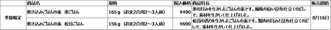 無印良品を展開する株式会社良品計画(東京都豊島区/代表取締役社長 堂前 宣夫)は、「炊き込みごはんの素」シリーズから、「炊き込みごはんの素 栗ごはん」と「炊き込みごはんの素 松茸ごはん」を、8月16日(水)から全国の無印良品とネットストアで、季節限定で発売します。