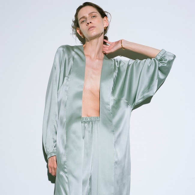 このシルクを100%使って織られた16斤のサテンで仕立てた「e/rm(イーアールエム)」のナイトウエアは、しっとりと滑らかな着心地とシルクを纏う贅沢な気分を味わっていただけます。