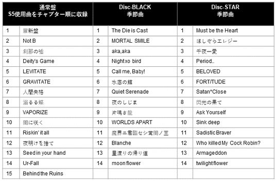 BLACKSTAR/During the demise/Breakin’ it faster/虹の彼方へ/僕のすべてを君に捧げる/Crazy for/陽はここに/日蝕/華麗なる誘惑/雪花/Purple Dawn/Just a Loser(全12曲)
