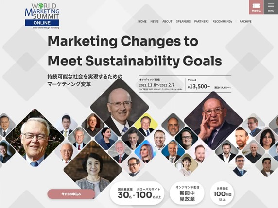 これからの世界に大きな影響を与える世界50ヵ国のリーダー、経営者、思想家、研究者、起業家、実務担当者などが世界をマーケティングでより良くするためのアイデアを披露する世界規模のオンライン国際会議「ワールド マーケティング サミット」。