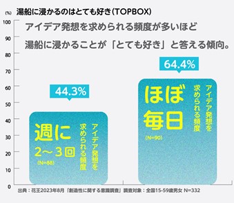 仕事やプライベートで新しいアイディアを求められる頻度が高い人ほど、湯船につかることが大好き。