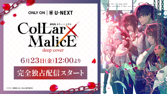 USEN-NEXT GROUPの株式会社U-NEXT(本社:東京都品川区、代表取締役社長:堤 天心)が運営する動画配信サービス「U-NEXT」は、2023年6月23日(金)より『劇場版 Collar×Malice -deep cover- 前編』を独占先行配信いたします。