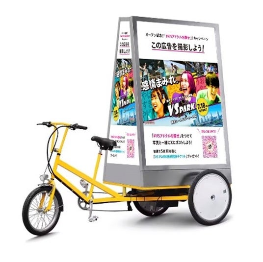 横浜・みなとみらいを走る自転車広告(アドクル)を撮影し、指定のハッシュタグをつけてX(旧Twitter)に投稿すると、抽選で5組10名さまにVS PARK無料招待ペアチケットが当たる!
