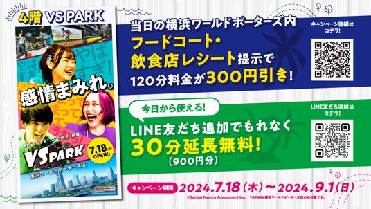 株式会社バンダイナムコアミューズメントは、屋内“ヤバすぎ”アクティビティ施設「VS PARK 横浜ワールドポーターズ店」を2024年7月18日(木)にグランドオープンします。