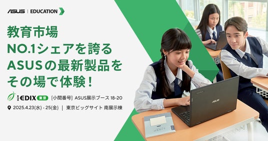 ASUS JAPAN株式会社は、4月23日(水)~25日(金)の3日間において、RX Japan株式会社主催の、国内最大級の教育総合イベント第16回「EDIX東京 教育総合展」にASUS JAPAN株式会社として単独出展することを発表しました。
