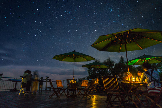 プリンス第2ゴンドラでは、山頂駅付近にある標高約1,500mの「Naeba 天空テラス」にて高原の爽やかな風を感じることができます。また、雲のない日は夜の煌びやかな星空の下で非日常をお楽しみいただけます。