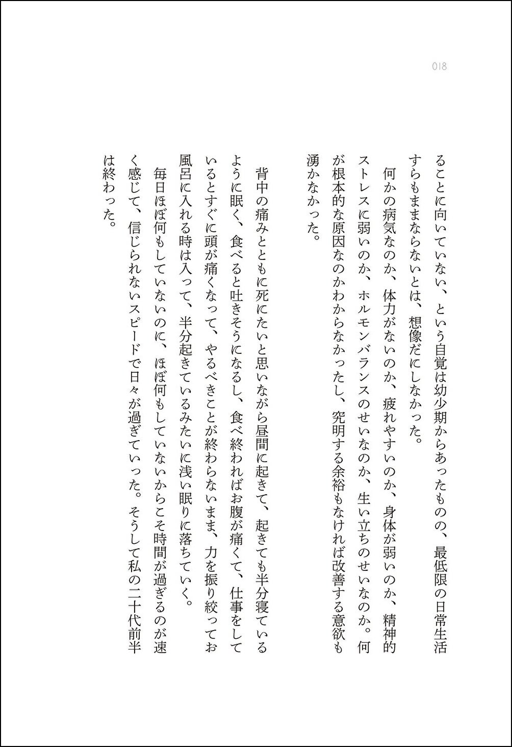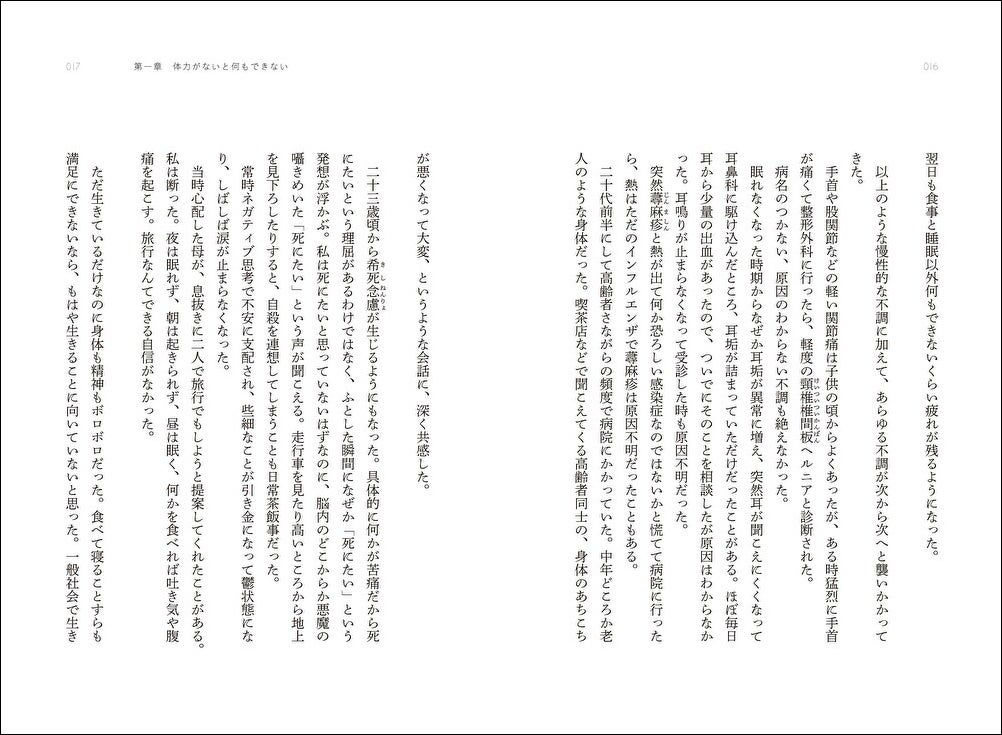 そのような虚弱仲間にはもちろん、健康で体力のある人にも理解してもらえるように、体脂肪率、筋肉量、1日あたりの運動時間と労働時間、1ヶ月あたりの読書冊数、そして年収まで具体的な数字を公開しながら、虚弱について赤裸々に綴っています。