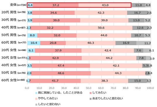 ところで、この時期悩まされている方も多い花粉症。腸活で腸内環境を整えることで花粉症の症状を緩和できると言われていますが、今回の結果では「してみたい」と考える方は多いものの「既に実践している、したことがある」方は4%と多くありませんでした。