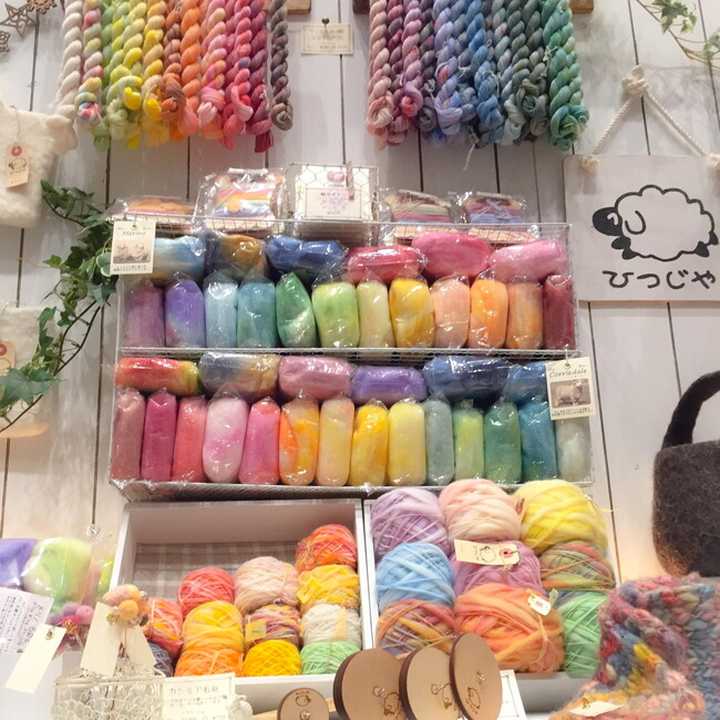 出来上がったとき、ちょっと違った趣きになるオリジナル羊毛・毛糸が揃います。当日、羊毛とスピンドルをお買い上げいただいたお客様には、「手紡ぎ」のレクチャーも。