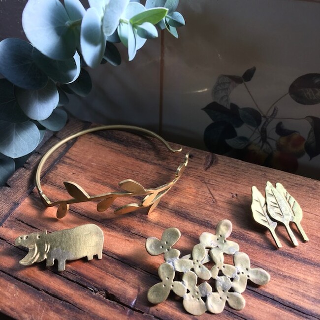 ボタニカルなデザインがモチーフの真鍮アクセサリー。シンプルで日常的に使いやすいものや、くすっと笑える“脱力系アニマル”がモチーフのものが揃います。