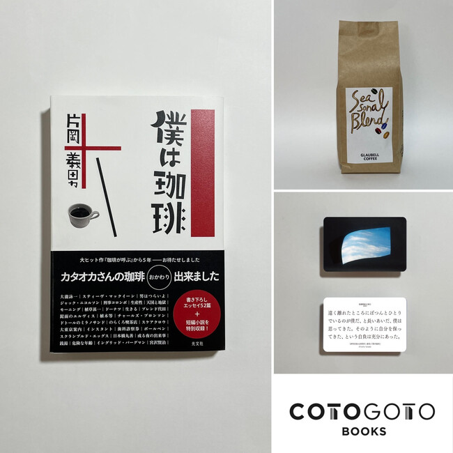 話題のオンライン書店「コトゴトブックス」では、『僕は珈琲』の為書き入り著者サイン本に、エッセイに登場する世田谷代田「グラウベルコーヒー」が特別に焙煎したスペシャル・ブレンドの珈琲豆200グラムを添えて予約受付中です。さらには著者が撮影した写真、そして文章を添えたフォト・カードもセットされるという特典も。貴重なサイン本と、著者も愛する大人気の喫茶店が今回のために特別焙煎した珈琲は、ぜひとも一緒に味わいたい!