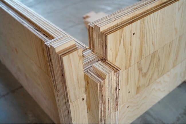 今回の「ウッドデザイン賞2023」を受賞した「ITaLOG」は、合板をCNCルーターで加工し、組み合わせることでログ材を構成して小屋を建てるログ構法です。小さなパーツに分割できるため、自家用車での運搬や、手作業での組み立てが可能になりました。共有されたデジタル加工データをCNCルーターで加工することで、運搬のコストや環境負荷の低減に貢献します。