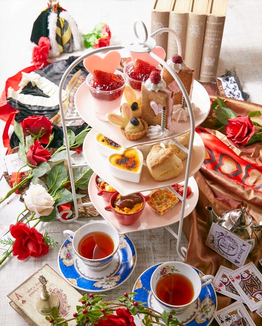 そしてこの度『幻想の国のアリス』で提供している人気のアフタヌーンティーに、5月31日(金)までの期間限定メニューが登場しました。新メニューは「不思議の国のアリス」に登場する人気キャラクター「ハートの女王」をテーマにした「クイーン・オブ・ハートのティーパーティー」。