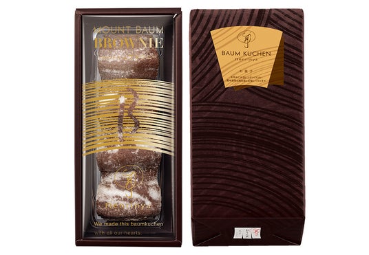 『マウントバーム ブラウニー』の美味しさの秘密は、重厚なチョコレートの味わい。一世紀に渡り受け継がれるスイス・フェルクリン社の「百年ココア」と、チョコレートの粋(すい)とも言える「カカオマス」を溶け込ませたチョコレート生地を長時間じっくりと焼き上げて、旨味を熟成させました。カカオの深いコクとチョコレートの味わいを一層一層厚焼きで丹念に閉じ込めることで、ずっしり重厚な味わいに仕上げた本格味のバームクーヘンです。