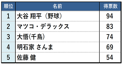・「デート飲みしたい有名人」男性部門1位は大谷 翔平さん、女性部門1位は田中 みな実さん