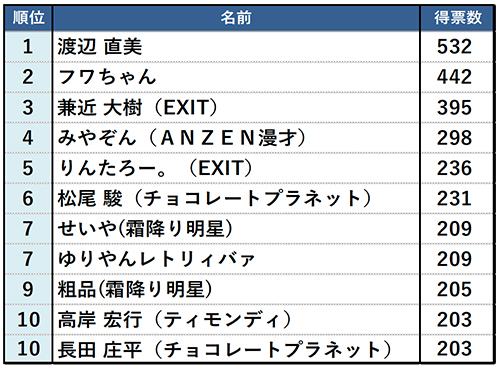 「飲み会を盛り上げてくれそうな若手お笑い芸人」はSNSでも話題の芸人がトップ3に!