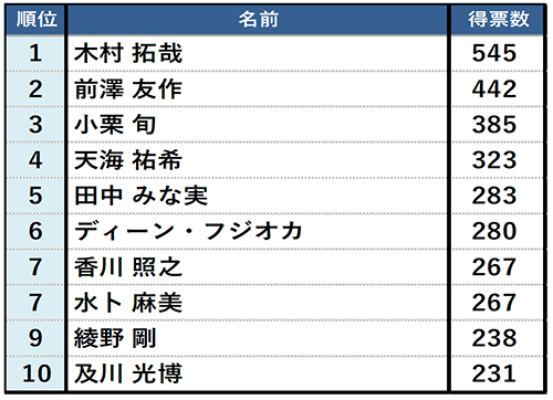 理由:【木村 拓哉】お店選びのセンスがありそうだから(23歳男性/大阪府) 【前澤 友作】一般人が行けないVIPなお店を知っていそう(35歳女性/兵庫県)