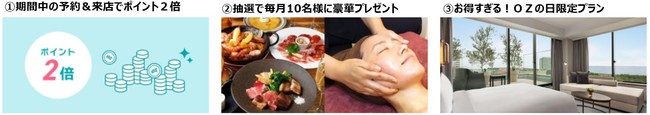 OZの日キャンペーン期間中にエントリー&予約をすると、当月の来店でもらえるOZポイントが2倍に!
