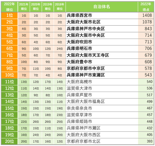 [関西]住みたい自治体ランキング