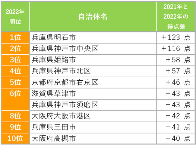 [関西]得点ジャンプアップした自治体ランキング