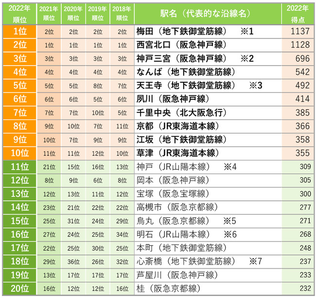 ・「住みたい駅」の対象駅は2府4県(大阪府、兵庫県、京都府、奈良県、滋賀県、和歌山県)にあるすべての駅が対象。