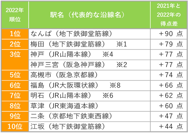 [関西]得点ジャンプアップした街(駅)ランキング