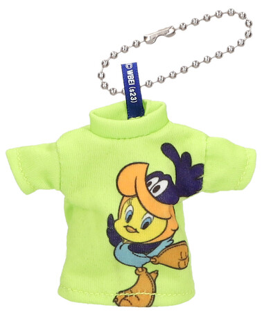 ミニチュアサイズのTシャツがボールチェーン付きキーホルダーになった「Tシャツキーホルダー」シリーズより、トゥイーティーがルーニー・テューンズの仲間たちのコスチュームを着用したデザインが登場。また、これまでのTシャツキーホルダーのサイズに比べ、1~2cmほど全体的にスリムなフォルムになりました。ボールチェーン付きで、バッグや鍵などお好きなところに取り付けることができます。