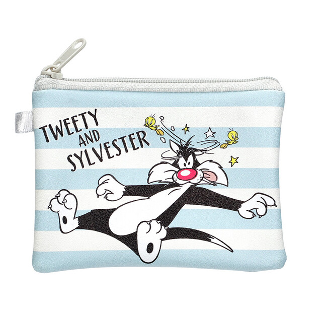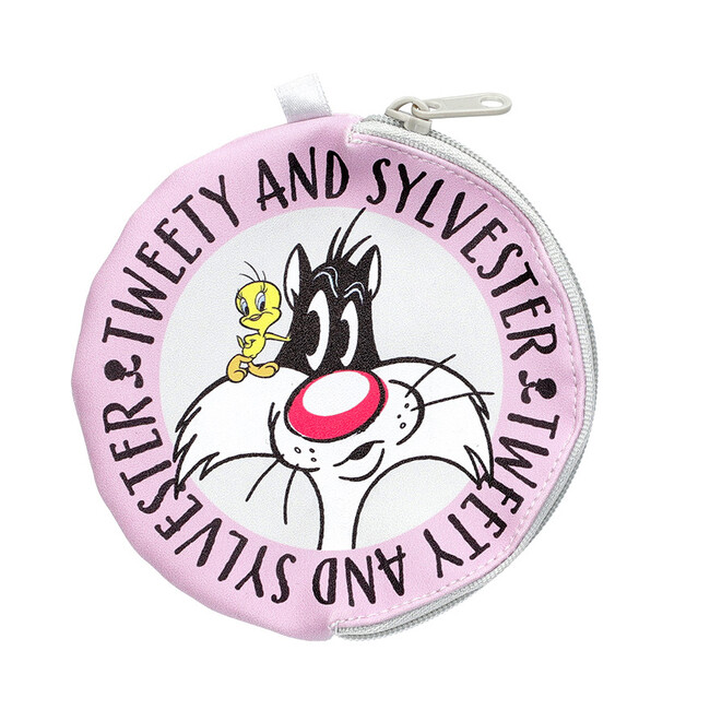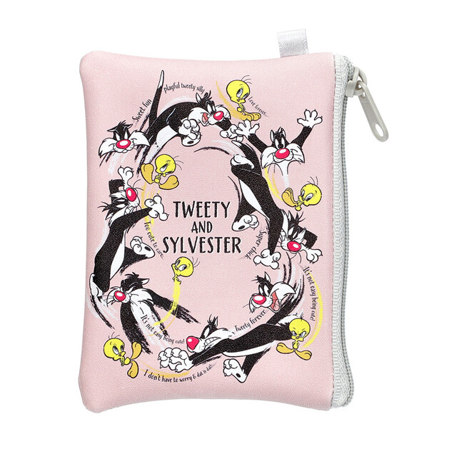 ルーニー・テューンズの大人気キャラクター、トゥイーティーとシルベスターをモチーフにした手のひらサイズのミニポーチです。シルベスターとトゥイーティーが追いかけっこをしていたり、ケンカをしていたりと、シルベスターとトゥイーティーのドタバタ楽しいワンシーンをデザインしています。長方形、丸型、L字ファスナー型の3タイプの形があり、薬や充電ケーブルなど身の回りの物を入れるのにぴったりのサイズです。