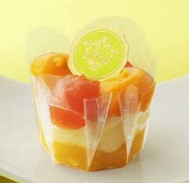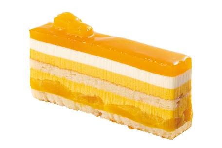 マンゴーのクリームにさわやかなオレンジジュレを巻き込みフレッシュマンゴーとオレンジを飾りました。