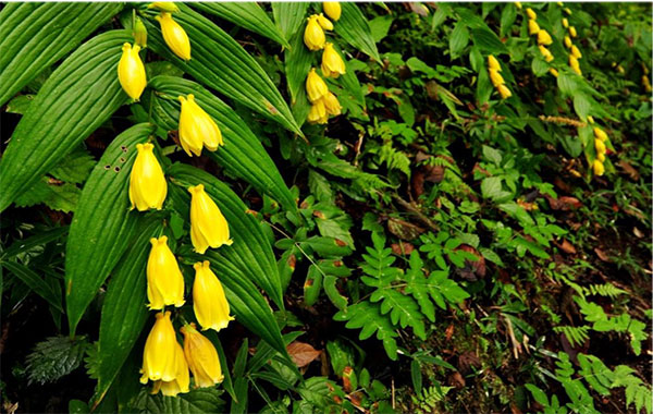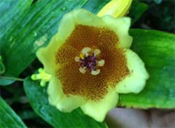 和歌山県の紀伊半島南部にのみ自生する希少なホトトギスの仲間です。黄色い花をすずなりに咲かせる姿は大変美しく、ホトトギスの花によくみられる斑点模様があり一際人気の植物です。山の斜面に広がるキイジョウロウホトトギスの群落はインスタグラムをはじめとするSNSでも良く映えます。
