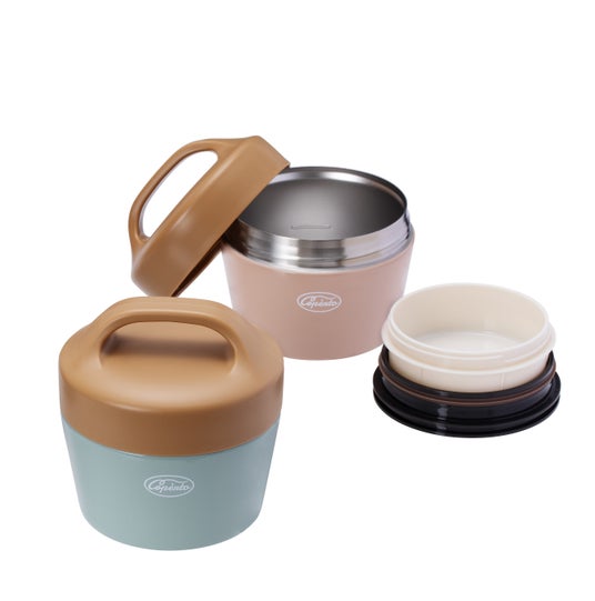 縦型でかばんにしまいやすく、持ち運びしやすい軽量タイプのランチジャーセット。