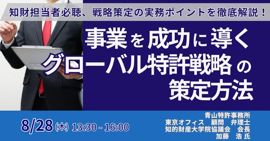 JPI(日本計画研究所)は、青山特許事務所 東京オフィス 顧問 弁理士 加藤 浩 氏を招聘し、事業を成功に導く、グローバル特許戦略の策定方法について詳説いただくセミナーを開催します。