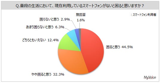 ■スマートフォンがないと困ると思う人は、スマホ利用者の8割弱。女性や若年層で比率高い