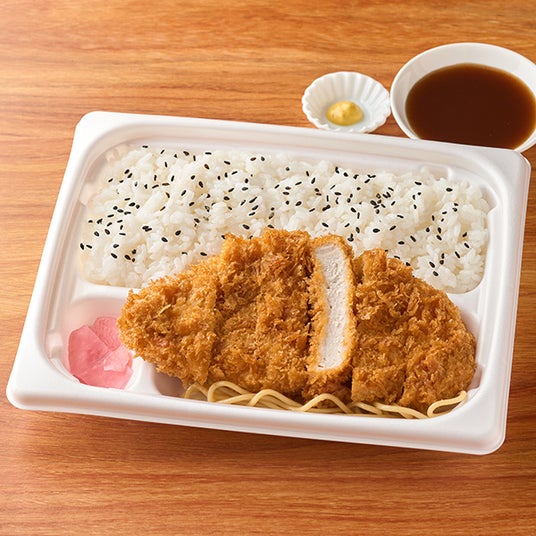【内容】通常よりも揚げる温度を低くし、時間をかけて調理することで、やわらかく肉本来の旨味が味わえる仕立てのとんかつ弁当です。ソースは野菜や果物などの甘みに、ほどよい酸味とスパイス感を効かせたオリジナルのソースです。