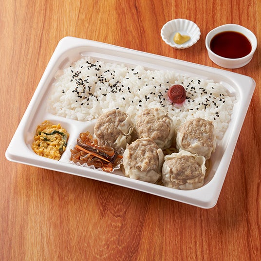 【内容】ごま油の風味と肉の旨味が楽しめるシュウマイを使用したお弁当です。「春雨の中華風炒め」や「ニラ玉炒め」を付け合わせることで飽きの来ない仕立てにしました。