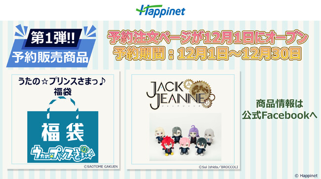 ハピネットブースにて販売予定の各種商品について、事前予約販売を実施することが決定しました。対象商品第1弾の詳細や第2弾以降の情報は、公式Facebook「Happinet Global Event( https://www.facebook.com/happinet2023/ )」及び予約注文ページにてお知らせします。