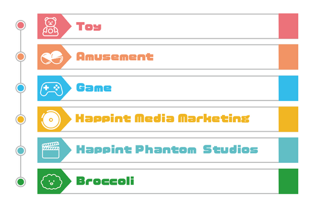 事業内容:玩具・遊戯用具の企画・製造・販売/映像・音楽ソフト等の企画・製作・販売/ビデオゲームハード・ソフト等の企画・制作・販売/玩具自動販売機の設置・運営/アミューズメント施設用商品等の販売