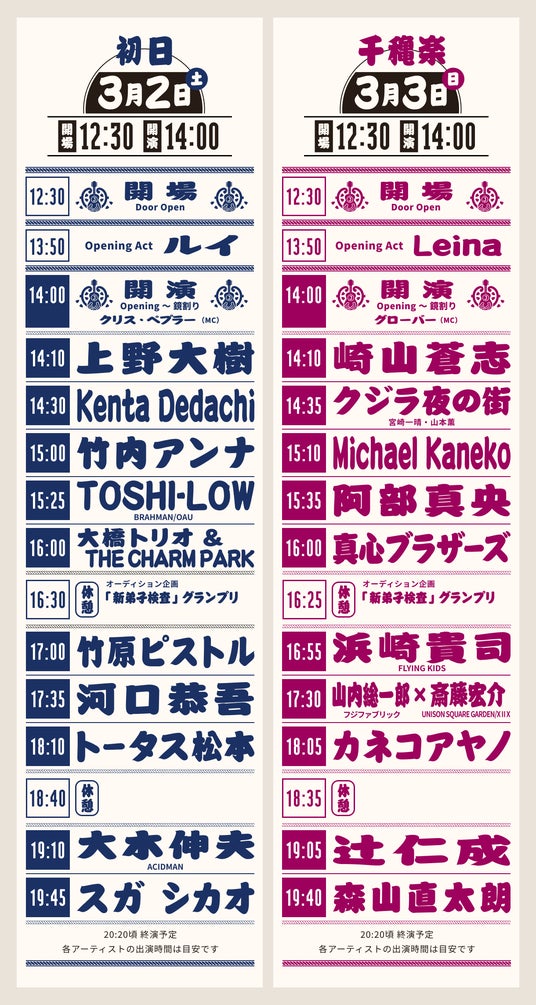 日時: 2024年3月2日(土)、3日(日)12:30開場 14:00開演 20:20頃終演予定