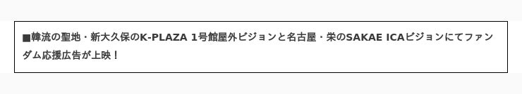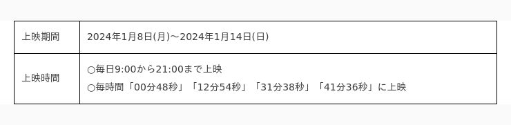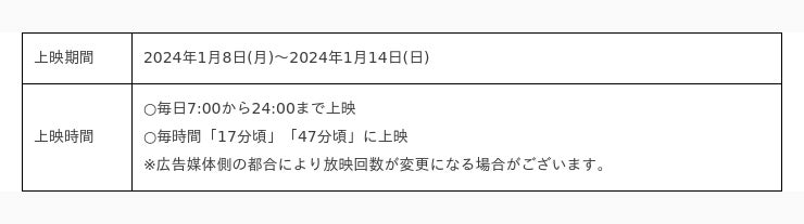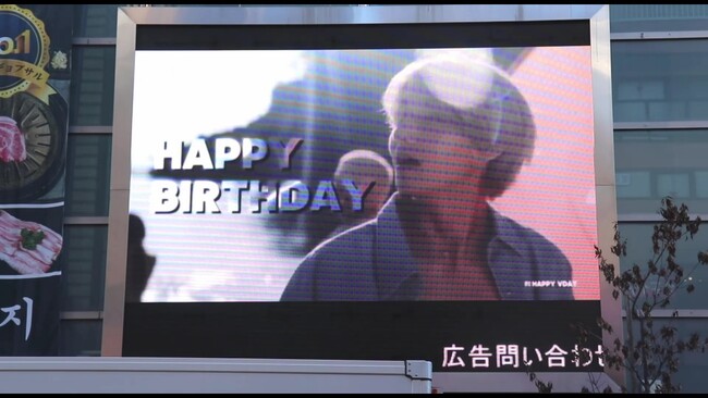 2023年12月11日(月)から12月17日(日)までの期間で開催した、「2023年のベストアイドルを選ぼう!」の投票において1位に選ばれたBTSのVさんの応援広告が、新大久保のK-PLAZA 1号館の屋外ビジョン及び名古屋・栄のSAKAE ICAビジョンで上映されております。