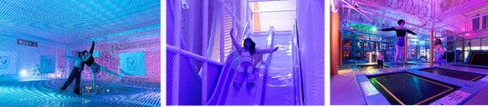 毎日19時からスポットライトやネオン照明など、さまざまな光が点灯する『ナイトトンデミ』を開催します。トランポリンやクライミング、巨大スライダーなど友だちと一緒に盛り上がれるアクティビティを楽しみながら、光に包まれる非日常を体験しましょう!
