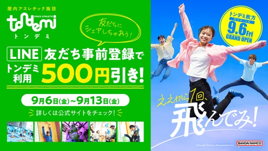株式会社バンダイナムコアミューズメントは、屋内アスレチック施設「トンデミ枚方 枚方モール店」(大阪府枚方市)を、2024年9月6日(金)にオープンします。