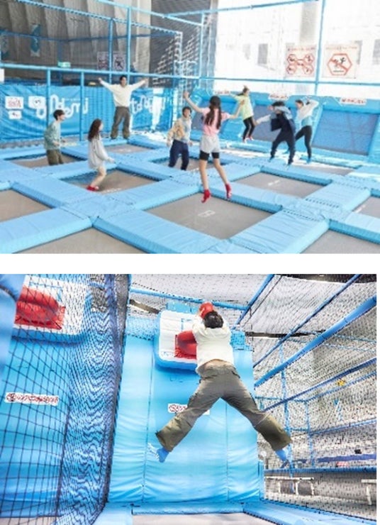 全7エリアから構成するトンデミ枚方では、国内初登場(※1)の、高い吹き抜けを生かした「トンデミタワー」や、動く足場を落ちないように渡る「アクションウォール」、京阪電気鉄道株式会社との限定コラボ「京阪電車 ジャンピングレース」をはじめ、トランポリンやクライミングウォール、デジタルアクティビティ「にんげんタワーバトル」などのトンデミ人気アクティビティを含んだ全30種類以上のアクティビティを導入します。さらに、毎日19時からスポットライトやネオン照明など、さまざまな光が点灯する『ナイトトンデミ』を開催します。光に包まれながらトランポリンやアスレチックを楽しみましょう!