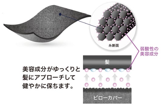 忙しい毎日を過ごす中で、少しでも睡眠時間を美容ケアに活かしたいというお客様の声を数多くいただいておりました。そこで、帝人フロンティア株式会社が長年培ってきた繊維技術を活かし、新しい美容発想の「まくらカバー型化粧品」を共同開発しました。