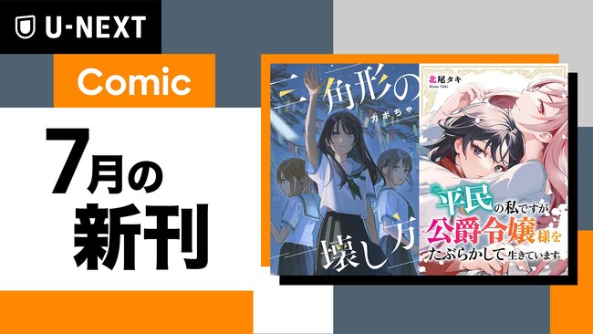 USEN-NEXT GROUPの株式会社U-NEXT(本社:東京都品川区、代表取締役社長:堤 天心)が運営する動画配信サービス「U-NEXT」は、オリジナルコミックレーベル「U-NEXT Comic」7月の新刊として2023年7月7日(金)より『三角形の壊し方』『平民の私ですが公爵令嬢様をたぶらかして生きています』を配信開始いたします。U-NEXTはもちろん、他のコミックサービスでも先行配信いたします。また、7月5日(水)の「ブック」サービスリニューアルに伴い、「U-NEXT Comic」全作品も「毎日無料」で提供開始いたします。